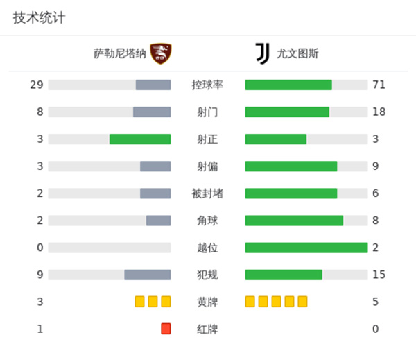 最终尤文客场2-1逆转十人萨勒尼塔纳14轮不败仍居第2。