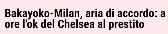 《米体》表示,AC米兰希望租借签下巴卡约科,并在合同中加入买断条款。他们提出的150万欧元租借费已经被切尔西接受,此外米兰方面提出让巴卡约科将年薪降至250万欧元也已经被球员接受。