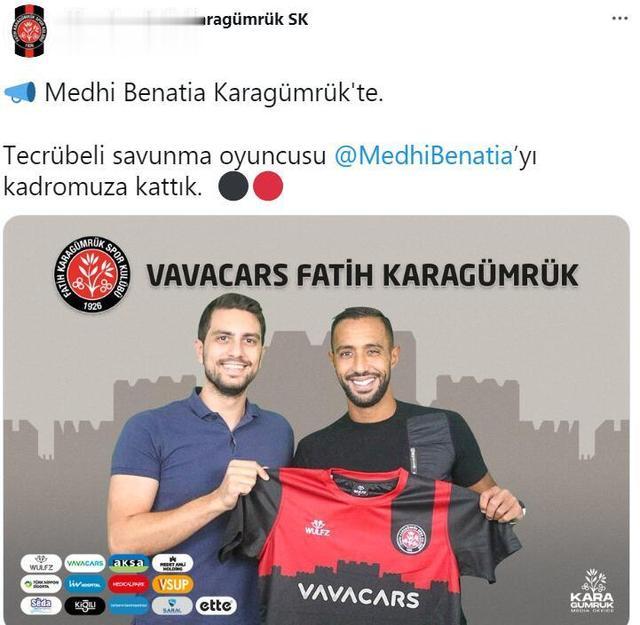 JRS直播网讯 北京时间7月31日,土超球队法蒂赫卡拉古鲁克官方宣布,球队正式签下摩洛哥中卫贝纳蒂亚。