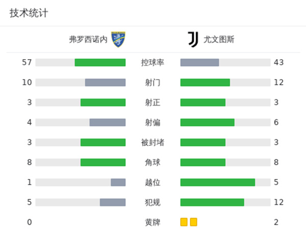 最终尤文客场2-1弗洛西诺内仍居第二。
