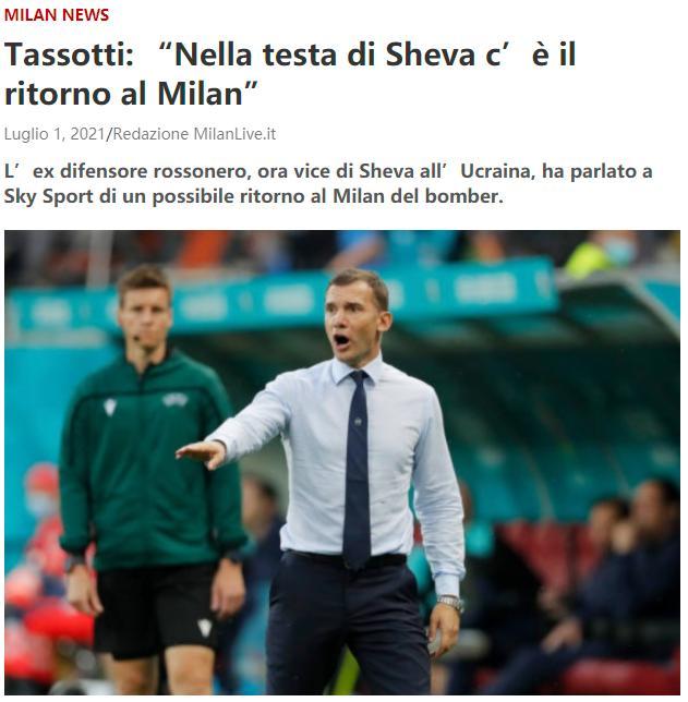 舍甫琴科是米兰传奇,目前他是乌克兰国家队主帅,并已经带领他们队史首次杀入欧洲杯八强,但塔索蒂表示,舍甫琴科一直没有忘记红黑军团。