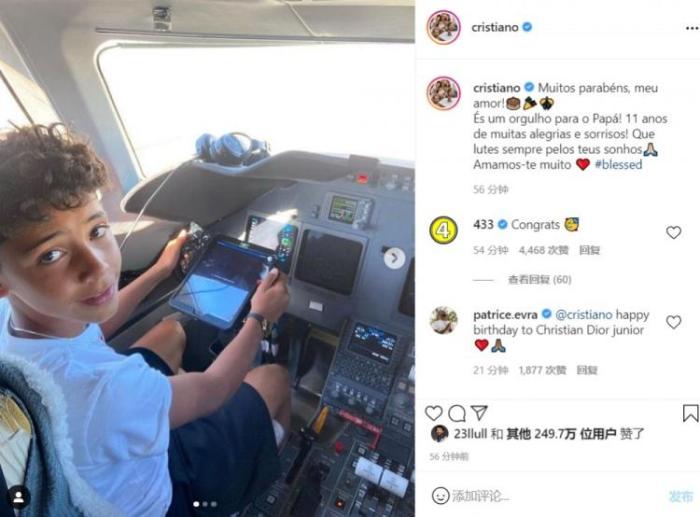 C罗写到:生日快乐,我亲爱的!你是爸爸的骄傲!有你后的这11年充满了欢乐与笑容!希望你能一直为你的梦想而奋斗