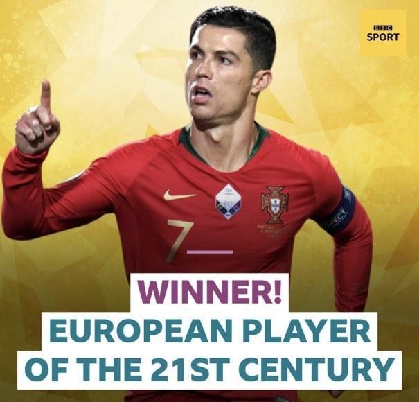 C罗在此次PK中击败了亨利、齐达内和马尔蒂尼进入决赛,并以56%-44%的票数击败巴萨传奇中场伊涅斯塔,被评为21世纪最出色欧洲球员。