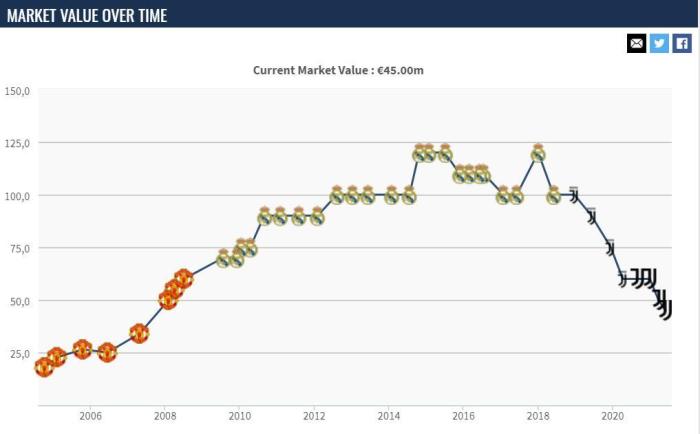 在身价排名上,C罗目前排名世界第100,意甲第21,尤文队内第5,葡萄牙第6,前锋第14,1985年出生球员第1