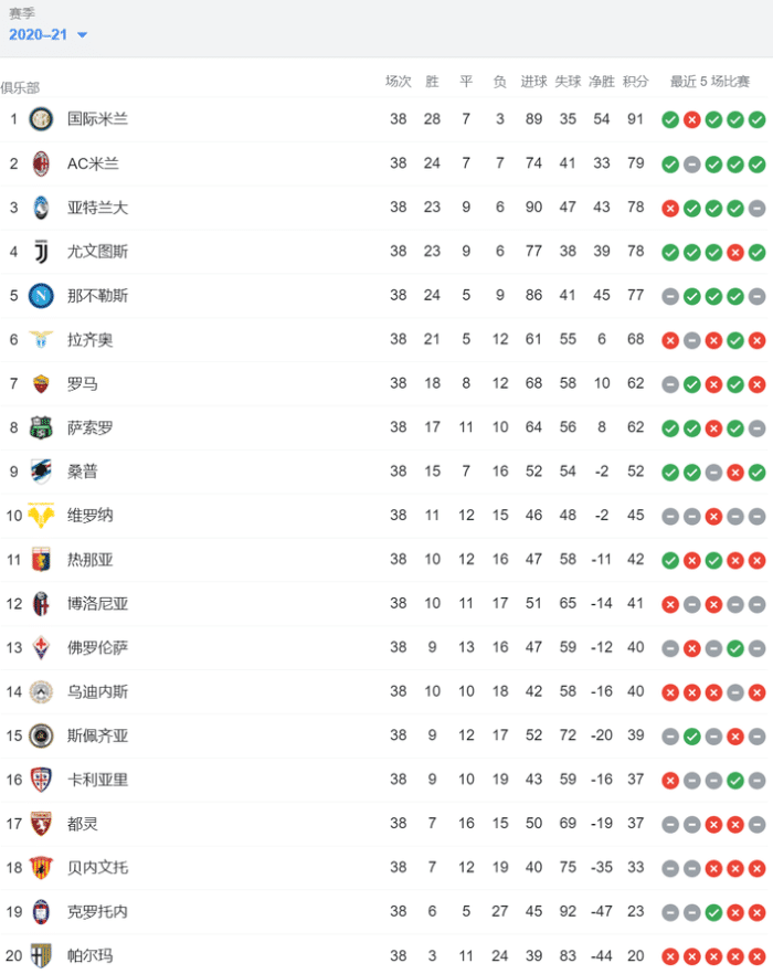 JRS直播网讯 5月24日凌晨,2020-21赛季意甲联赛落下帷幕,国际米兰夺得冠军,AC米兰和尤文图斯在最后一轮锁定欧冠资格。