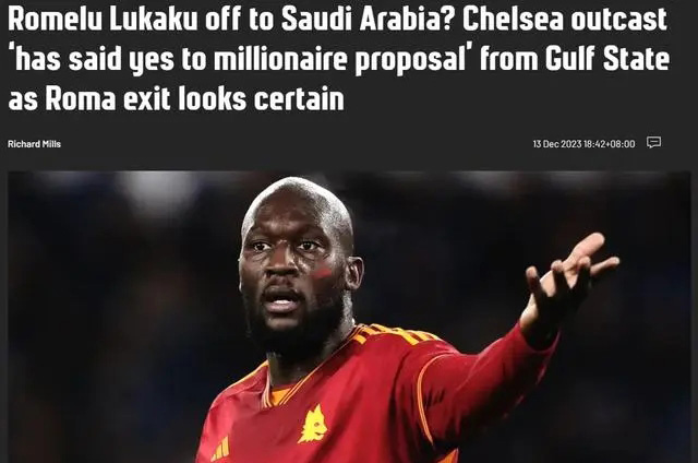 JRS直播网12月14日据意大利记者法比奥-桑蒂尼透露,卢卡库没有继续留在罗马,而是接受了一份丰厚的报价,下赛季将前往沙特职业联赛球队效力。