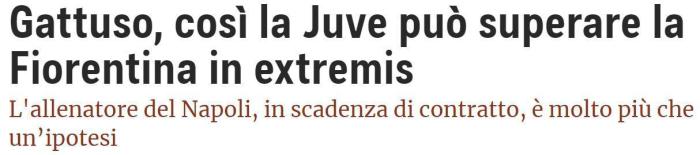 《都体》表示,目前看来,加图索最可能成为尤文新帅,他的排位超过了阿莱格里和齐达内,尤文方面打算与佛罗伦萨争夺加图索。