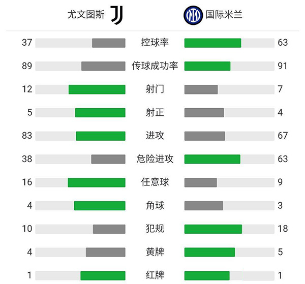 全场比赛结束,最终尤文3-2击败国米。