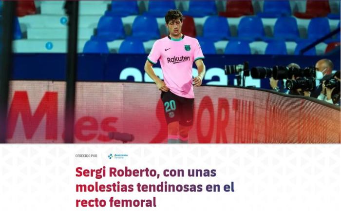 罗贝托在对莱万特时被换上又被换下,赛后巴萨官方宣布他受伤了。《阿斯报》称他将缺席三到四周,提前告别本赛季,并告别欧洲杯。