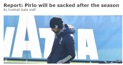 在尤文0-3不敌米兰后,尤文确认皮尔洛本周不会被解雇。本场输球后,尤文能否晋级欧冠已经不在自己的掌握之中,而赛季只剩下3场比赛。