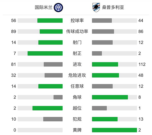 第61分钟,刚刚替补登场的巴雷拉送出助攻,皮纳蒙蒂停球之后抽射破门,国米4-1桑普。