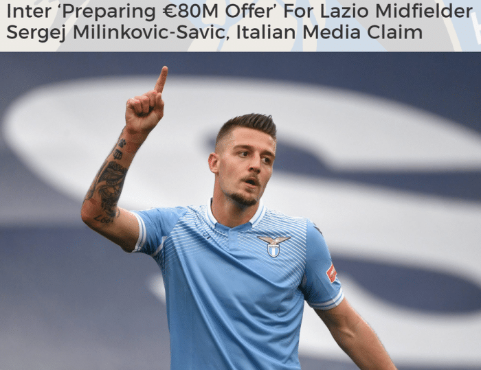 JRS直播网讯 据《信使报》报道,国际米兰有意引进拉齐奥中场米林科维奇,马洛塔已经准备好了一份8000万欧元的报价。