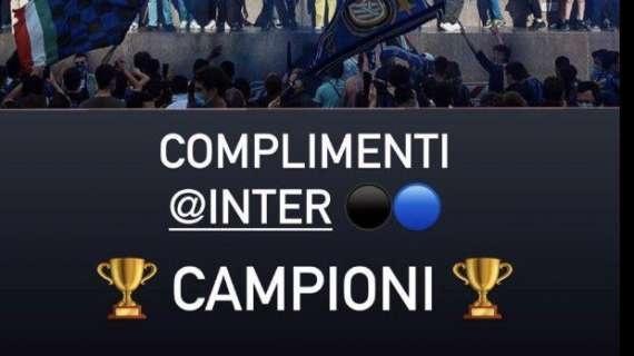 他在社交媒体上晒出国米球迷们庆祝的照片,并写道:“祝贺国米赢得意甲联赛冠军。”