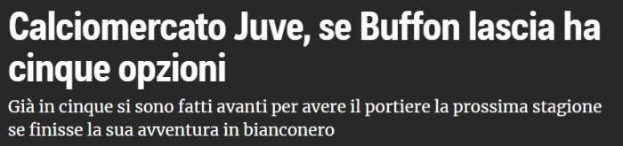 《都体》称,布冯会在意大利杯决赛后做出选择,除了亚特兰大外,还有五家海外俱乐部对他有兴趣。