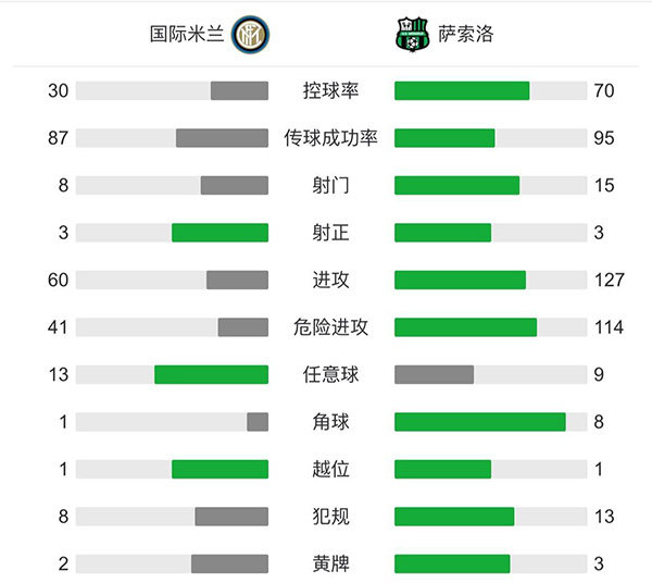 第66分钟,萨索洛前锋拉斯帕多里禁区内背身拿球被德弗里拉倒在地,但是主裁判没有表示。国际米兰马上打出快速反击,卢卡库前场右边路带球向前,随后低平球斜传到禁区前沿左路,劳塔罗-马丁内斯得球后突入禁区内低射破门,2-0。