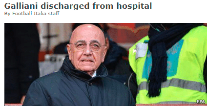 JRS直播网讯北京时间3月27日,前米兰高管加利亚尼在此前前感染新冠病毒,本周五他已经康复出院。