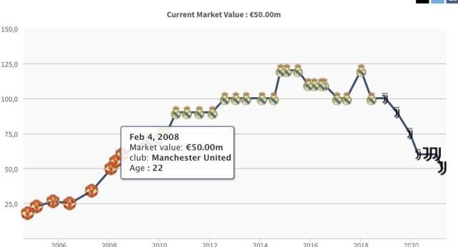 而C罗的“一生之敌”梅西,目前的最新身价为8000万欧元。根据统计,5000万欧元是C罗近13年来的最低身价,当时2008年他还在曼联,也为5000万欧元。