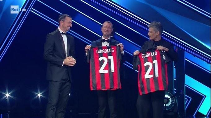 JRS直播网讯 在出席今年的圣雷莫音乐节时,伊布发表了“励志演讲”。在演讲结束后,伊布给两位音乐节主持阿玛迪斯和菲奥雷洛送上了礼物——两件印着二人名字的21号米兰球衣,而阿玛迪斯和菲奥雷洛其实都是国米球迷。