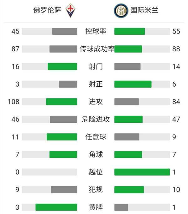 查看:佛罗伦萨vs国际米兰 全场录像技术统计: