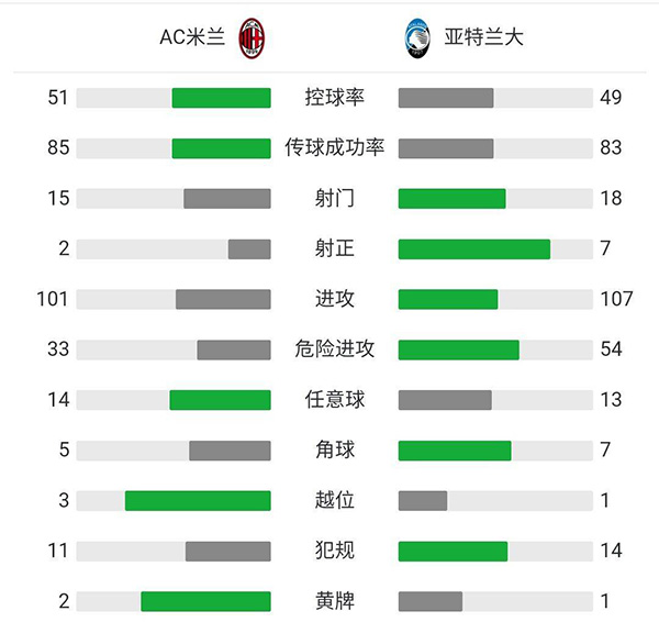 查看:AC米兰vs亚特兰大 全场录像技术统计: