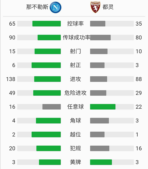 查看:那不勒斯vs都灵 全场录像技术统计: