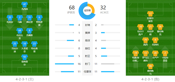 查看:萨索洛vsAC米兰 全场录像技术统计: