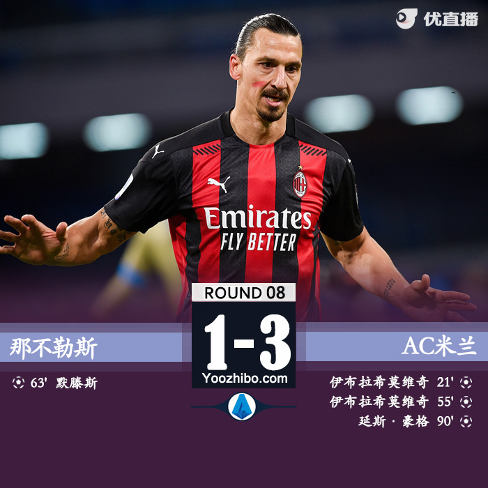 北京时间11月23日3:45JRS直播网讯,意甲第8轮,那不勒斯迎战AC米兰。上半时特奥助伊布为AC米兰先拔头筹,迪洛伦佐中框。下半时雷比奇助伊布达成双响,默滕斯扳回1球,巴卡约科两黄一红退场,那不勒斯10打11,海于格读秒破门斩个人意甲处子球。最终,AC米兰3-1那不勒斯。本场战罢,AC米兰20分,那不勒斯14分。