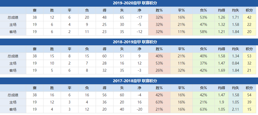 桑普多利亚近年成绩: