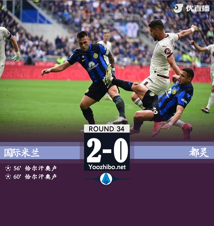 国米2-0都灵 恰尔汗奥卢双响小图拉姆造点