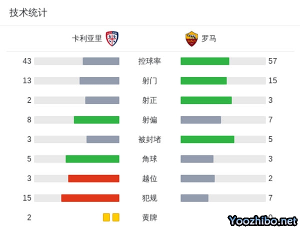 最终,罗马0-0战平卡利亚里。