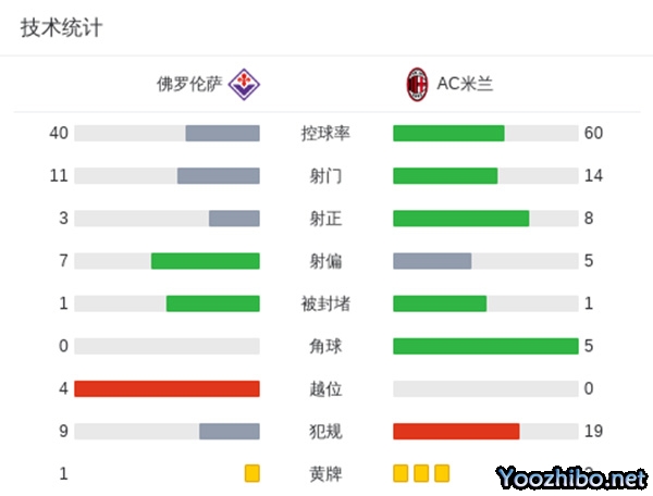 最终米兰1-2不敌佛罗伦萨,终结了联赛三连胜的势头,各赛事两连败。