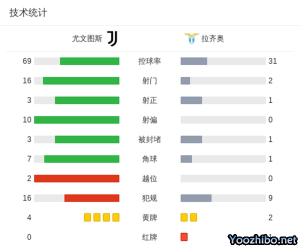 尤文1-0十人拉齐奥 卡巴尔造乌龙制胜卡卢卢单刀造红