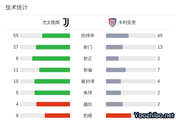 最终,尤文4-0完胜卡利亚里,晋级意大利杯8强。