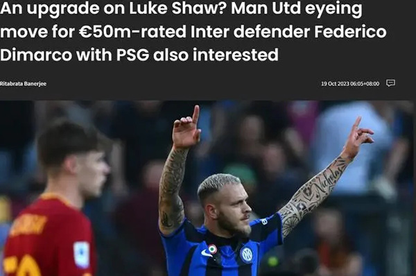 JRS直播网10月19日据意大利媒体《calciomercato》报道,曼联正在考虑在下一个转会窗口报价签下国米左后卫费代里科-迪马尔科。