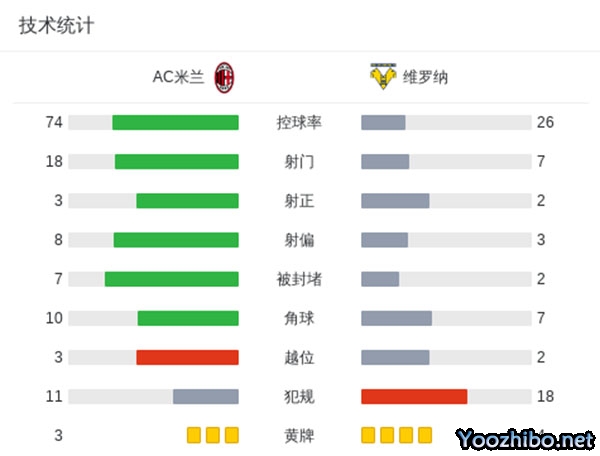 最终,AC米兰1-0击败维罗纳。