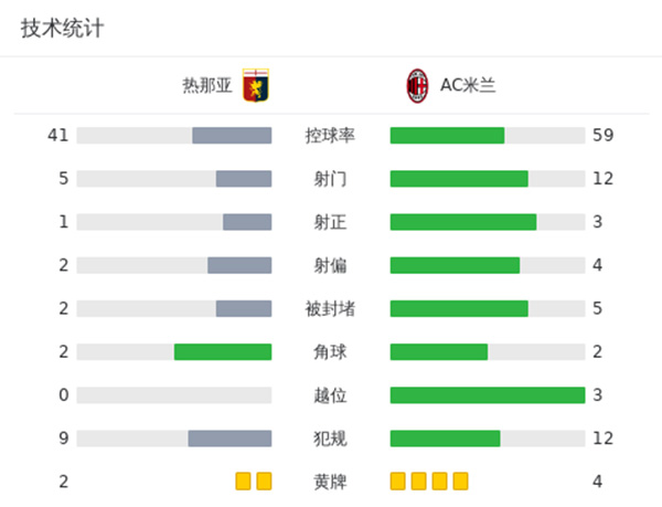 关键事件: 第87分钟,穆萨在右路送出传中,普利西奇停球转身左脚射门一气呵成,这球J-马丁内斯无能为力,VAR介入,确认普利西奇进球有效,AC米兰1-0热那亚。