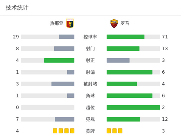 罗马1-4惨败热那亚 开局6轮仅1胜距降级区2分