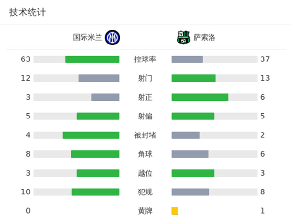 最终全场比赛结束,国米1-2萨索洛。