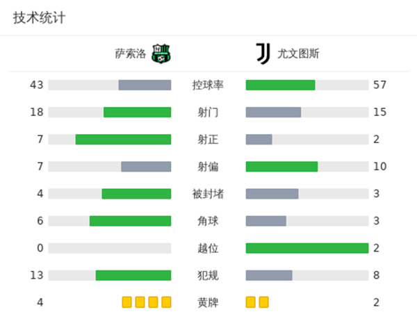 最终尤文图斯客场2-4不敌萨索洛。