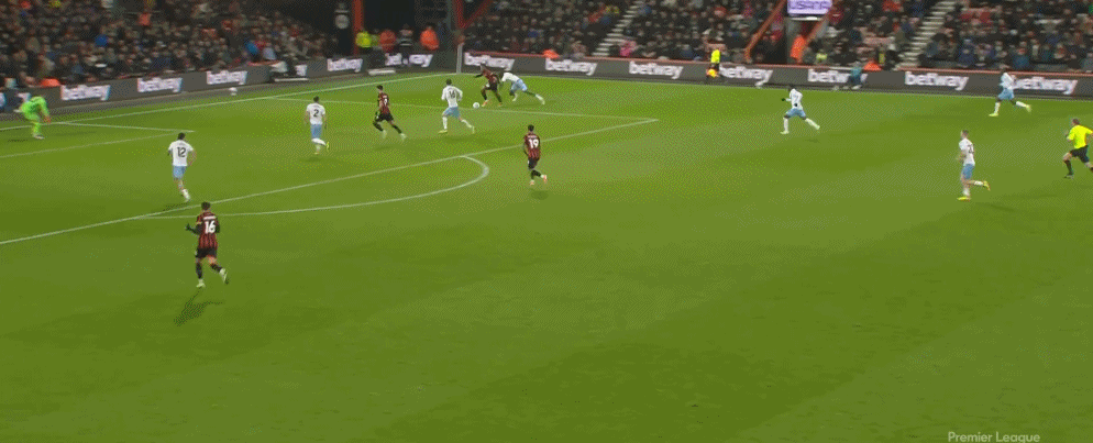 第79分钟,塞门约右路横传,克鲁伊维特抽射破门!伯恩茅斯1-0