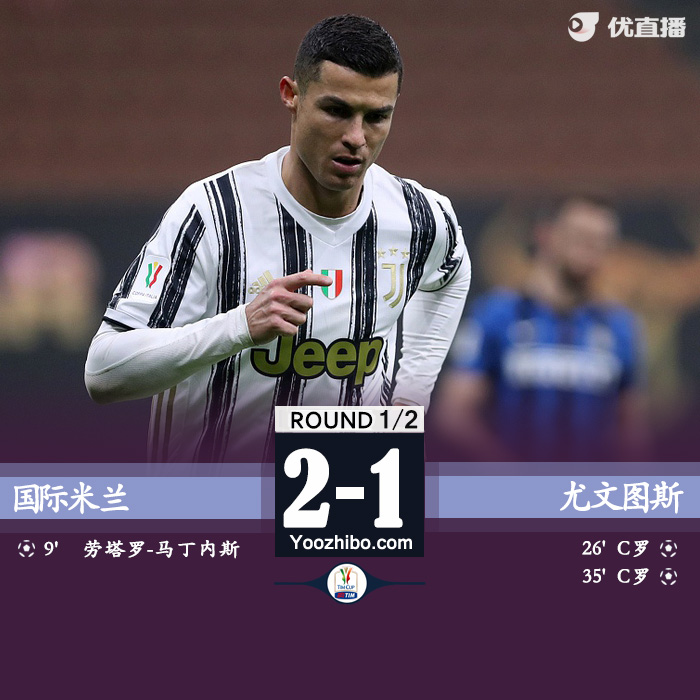 JRS直播网2月2日讯 北京时间2月3日3:45,意大利杯半决赛首回合,国米迎战尤文。上半时劳塔罗为国米先拔头筹,夸德拉多造点,C罗斩双响。下半时德米拉尔门线救主。最终,国米1-2尤文。