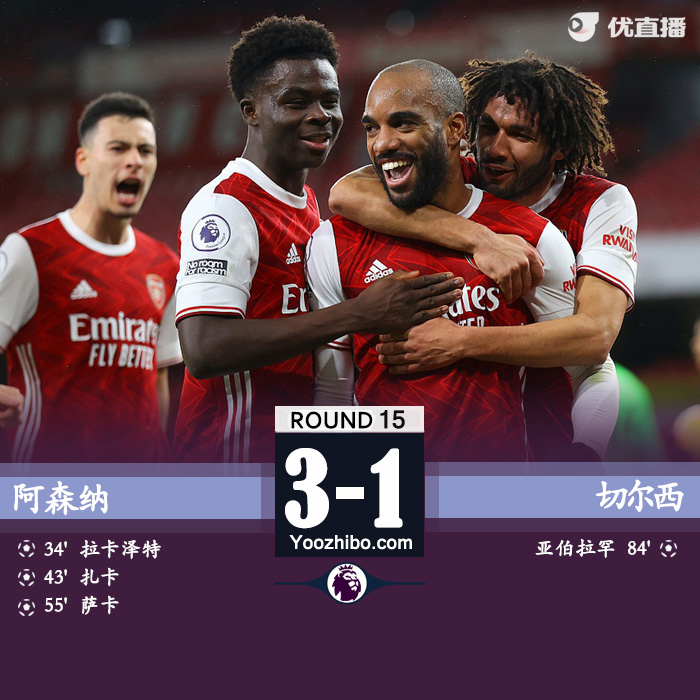 JRS直播网12月27日讯 北京时间12月27日凌晨1点30分,2020-21赛季英超第15轮在酋长球场展开角逐,阿森纳坐镇主场迎战切尔西。上半场拉卡泽特点射打破僵局,扎卡任意球建功,下半场萨卡精彩吊射破门,亚伯拉罕扳回一城,若日尼奥失点。最终阿森纳主场3-1战胜切尔西,阿森纳终结联赛7轮不胜,切尔西联赛客场三连败。积分榜方面,阿森纳积17分位居第14,切尔西积25分名列第6。