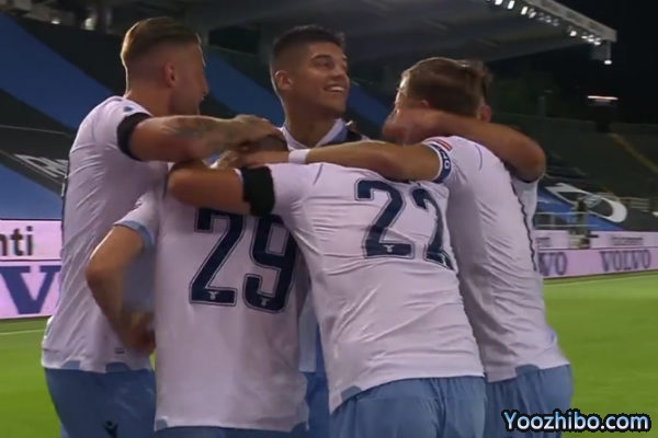 第5分钟,拉齐奥球员前场右侧横传,德容恩禁区中路伸腿解围不慎自摆乌龙,拉齐奥笑纳大礼取得梦幻开局,1-0