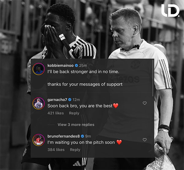 梅诺也坚称自己将很快回归。梅诺在社媒上表示:「我会很快变得更强大地回来,谢谢你们的支持信息。」布鲁诺·费尔南德斯、加纳乔等队友则表示等你回来。