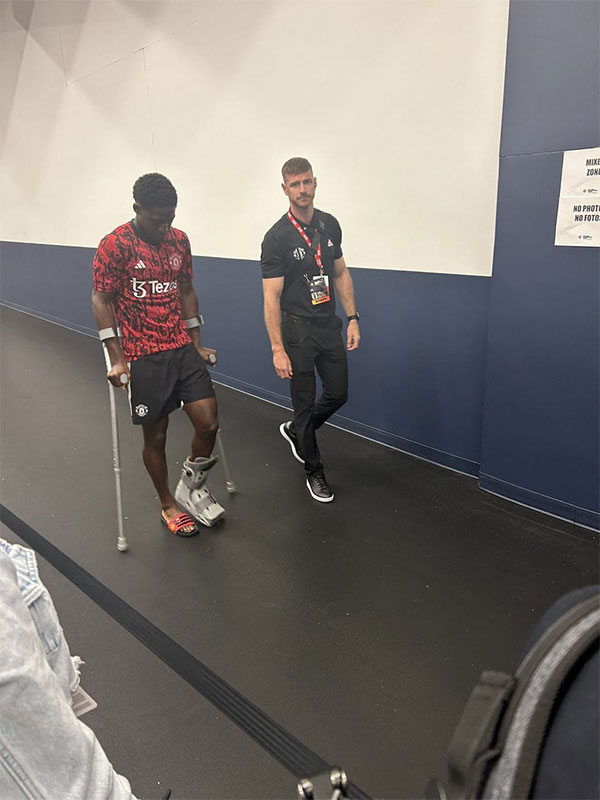 JRS直播网讯07月29日曼联18岁的英格兰后腰科比·梅诺在与皇马的比赛中开场就受伤,赛后穿上防护靴拄拐行走,人们担心他的伤势可能很重。不过,根据曼联公布的名单,他仍然进入了周一与多特蒙德友谊赛参赛之列。