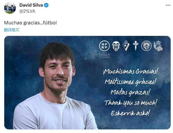 随后,大卫-席尔瓦的老东家曼城和西班牙国家队官方账号,都第一时间发文,向这位中场大师致敬。