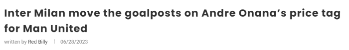 佩杜拉称:「即使在过去的几个小时里,曼联也已经证实了他们对奥纳纳的强烈兴趣。国米正在等待对方强烈的兴趣转化为6000万欧元,或类似金额的报价。其中将包括简单的奖金。4500万到4800万欧元作为基础的报价,只要另外1200万到1500万的浮动条款的支付条件,属于易如反掌的水平。尽管国米是免费签下奥纳纳的,无论如何都可以获得巨大的资本收益,但他们并不打算给出任何折扣。」