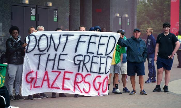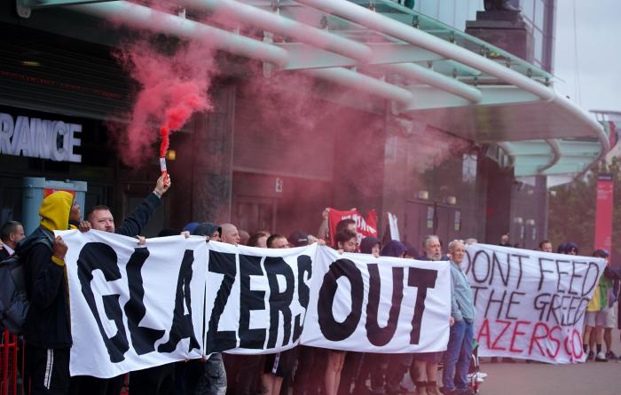 他们还高唱:「不要新球衣,只要新老板(No new shirts, we need new owners)!」还有人怒吼:「卖掉曼联,然后滚回美国!」