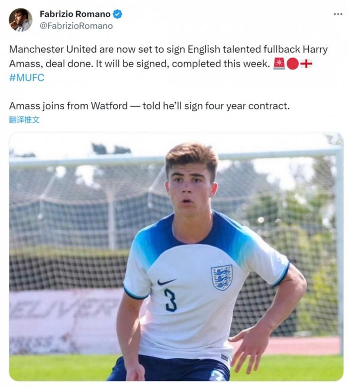 JRS直播网讯06月27日据The Athletic报道,曼联已经同意签下沃特福德的16岁的左后卫哈里-阿马斯。