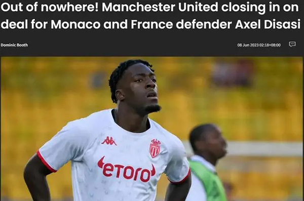 JRS直播网讯06月08日据法国媒体《队报》报道,曼联与摩纳哥中后卫阿克塞尔-迪萨西的转会已经接近尾声。法国的多家媒体声称,曼联对法国俱乐部约4000万欧元的要价没有异议。而L'Équipe报道,尽管交易被描述为接近完成,但两家俱乐部实际上还没有开始正式谈判。